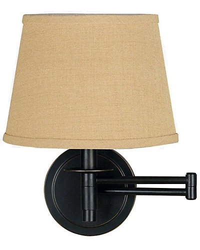 - Design details: light gold tapered drum shade, oil rubbed bronze finish metal base, requires 1-100 Watt (M) Bulb (not included), On/Off Column Switch